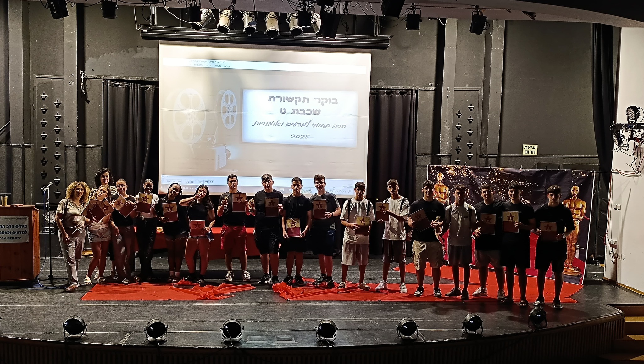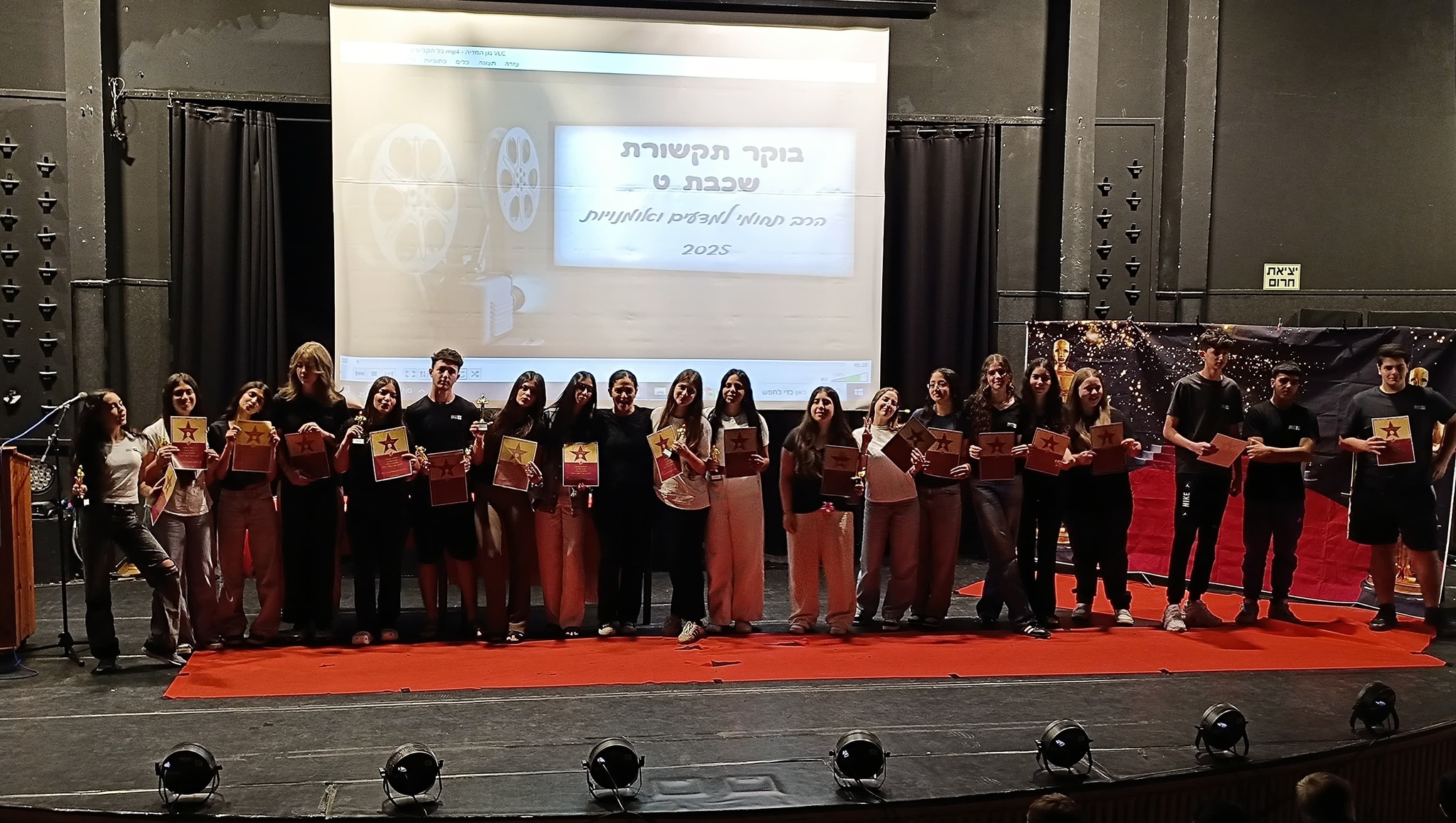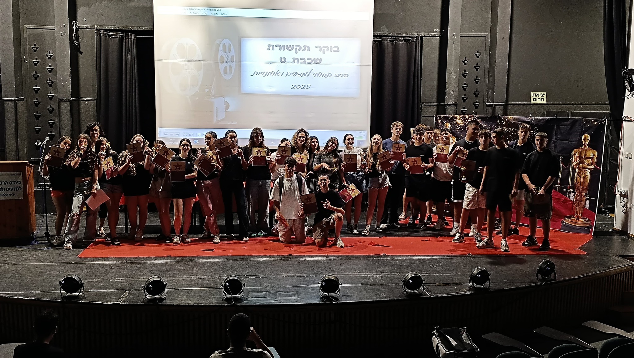 ולסיום, עלו לבמה כל תלמידי כיתות ט3, ט4 וט5, וקיבלו תעודות סיום מגמת תקשורת – עם חיוך גדול בלב והמון זיכרונות מהדרך שעברו יחד.