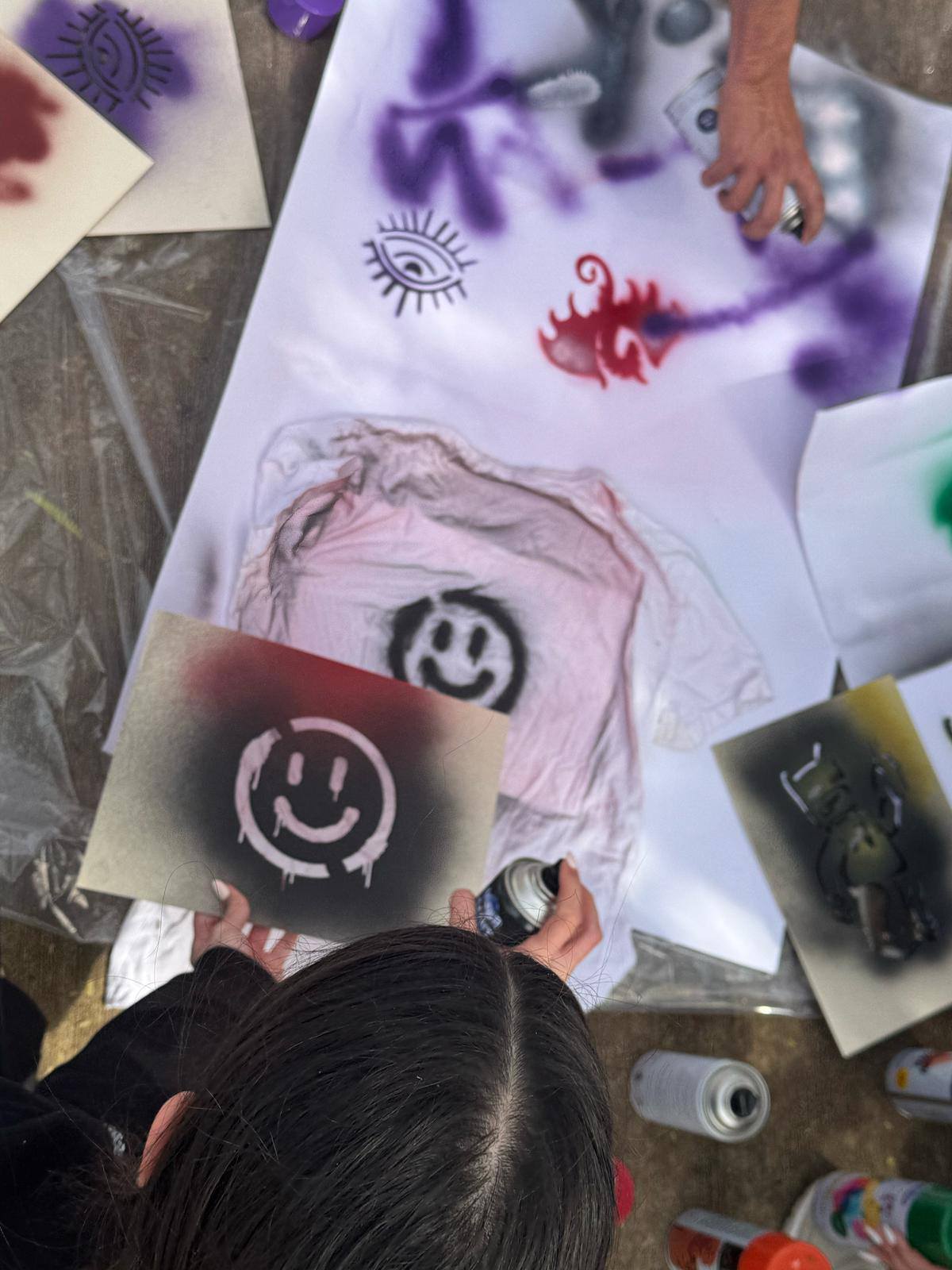 ולקינוח – סדנת גרפיטי חווייתית עם ספריי ושבלונות, שבה כל אחד ואחת יכלו לתת דרור ליצירתיות שלהם! 🎨✨